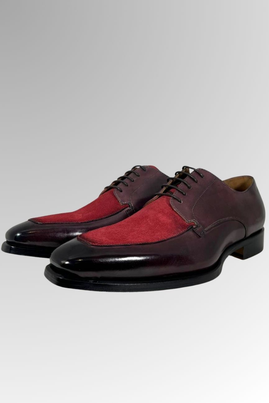 Cuir pleine fleur italien, patine et polissage à la main. Des petites séries, contrôlées une à une, pour une allure qui dure.