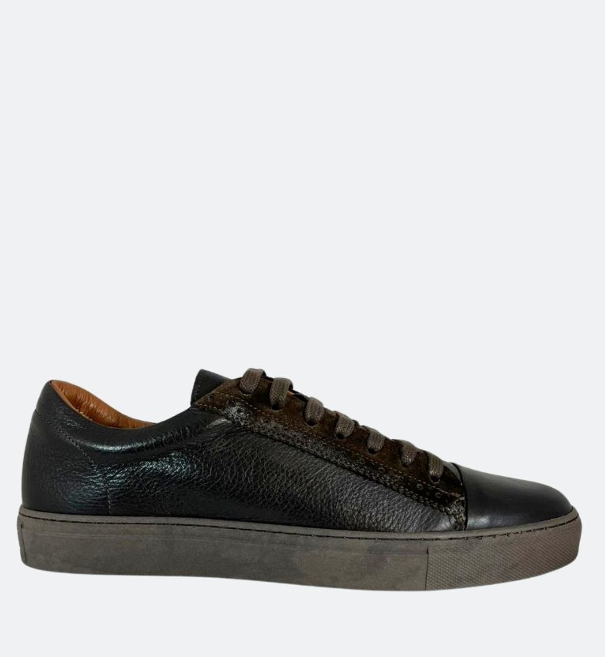 Sneakers en cuir italien marron foncé à lacets